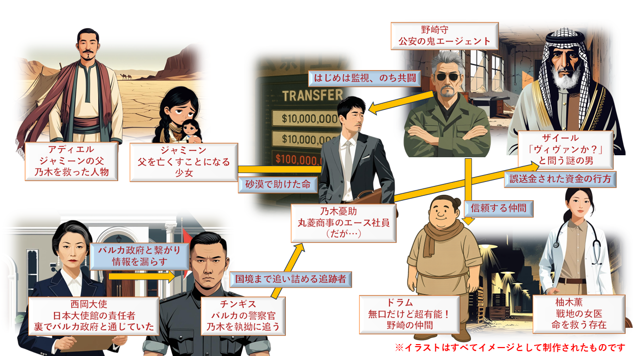 誤送金事件から始まり、砂漠の逃走、別班の真実、そして父との対峙へ──全話の流れを、図でスッキリ読み解いていきましょう!