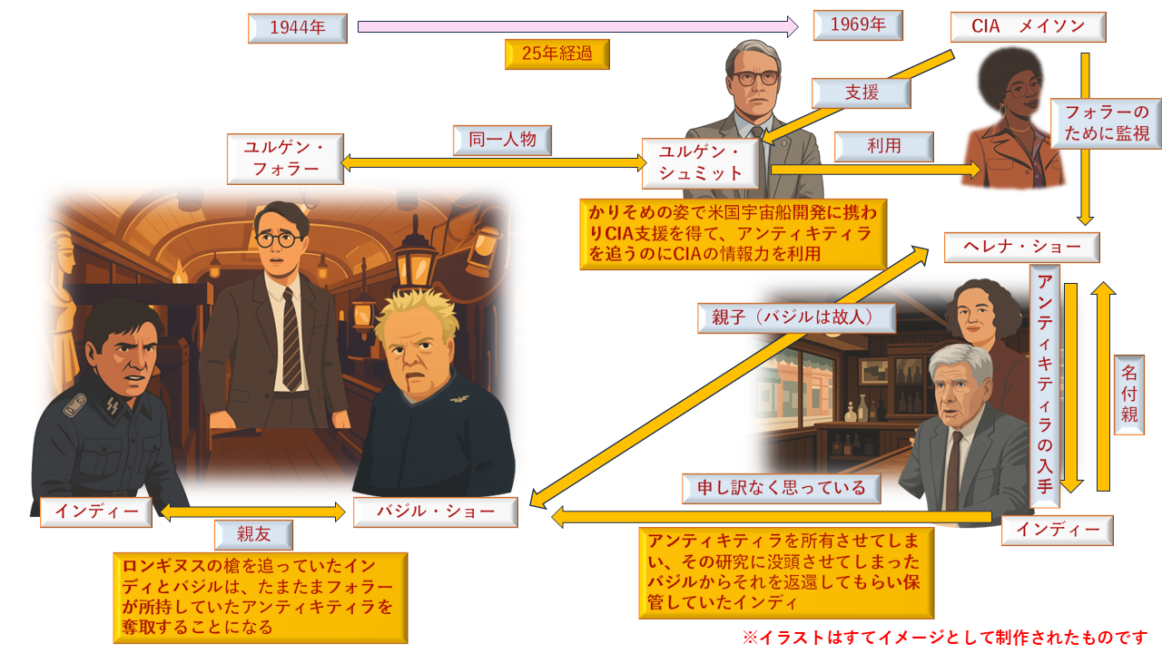 相関図①|「運命のダイヤル」アンティキティラを追うヘレナの狙いは?