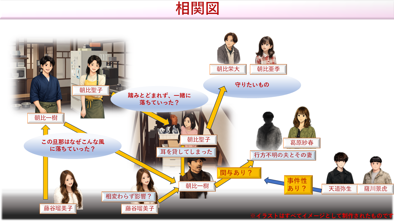 そんな彼女が、葛原紗春さんに出会うことになるんだけど、彼女も行方不明の旦那を抱える身。
