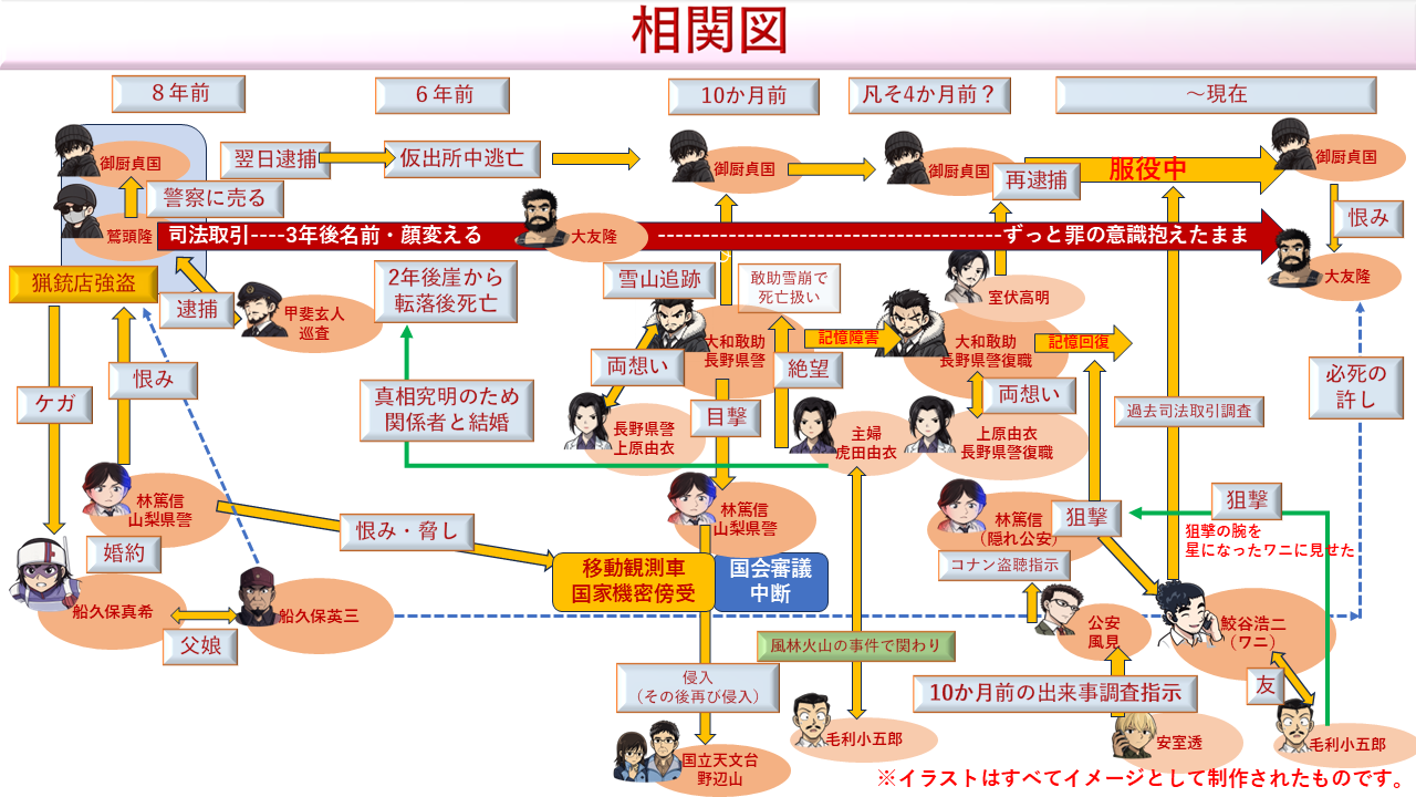 相関図①|毛利小五郎が6年前に関わった事件「風林火山」とは?
