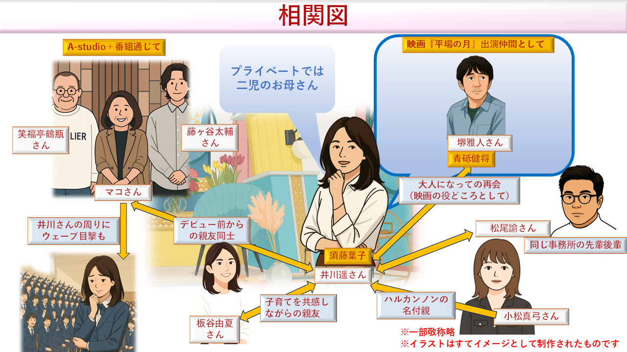 今回はA-studio+、映画『平場の月』に関するトークから見えてきた交友や人柄を、相関図とエピソードでまとめてみましたよ。